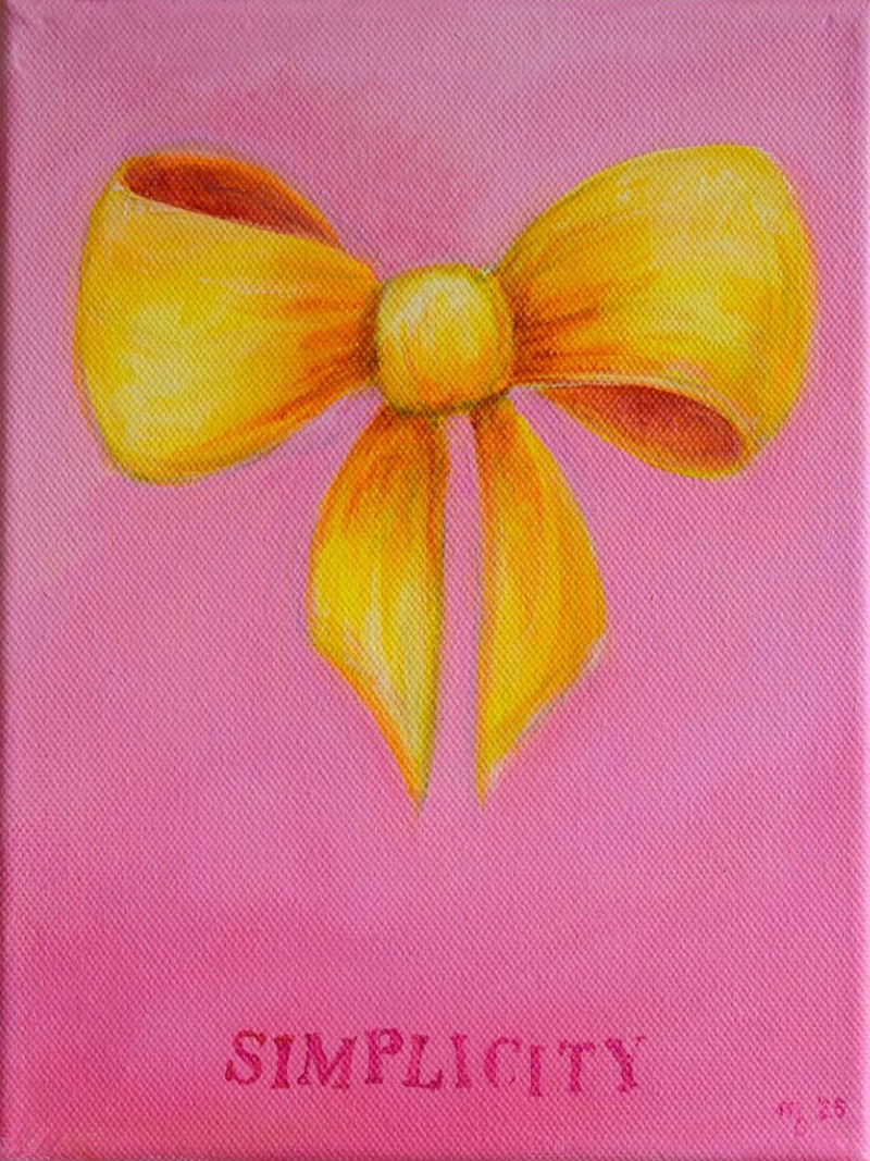 Ein abstrakter Begriff und ein konkretes Objekt treffen sich hier. Minimalismus darf schön aussehen! Eine Schleife ist zwar eigentlich etwas Dekoratives und Vergängliches, aber in der Kunst kann eine Schleife endlich Ewigkeit erhalten.
